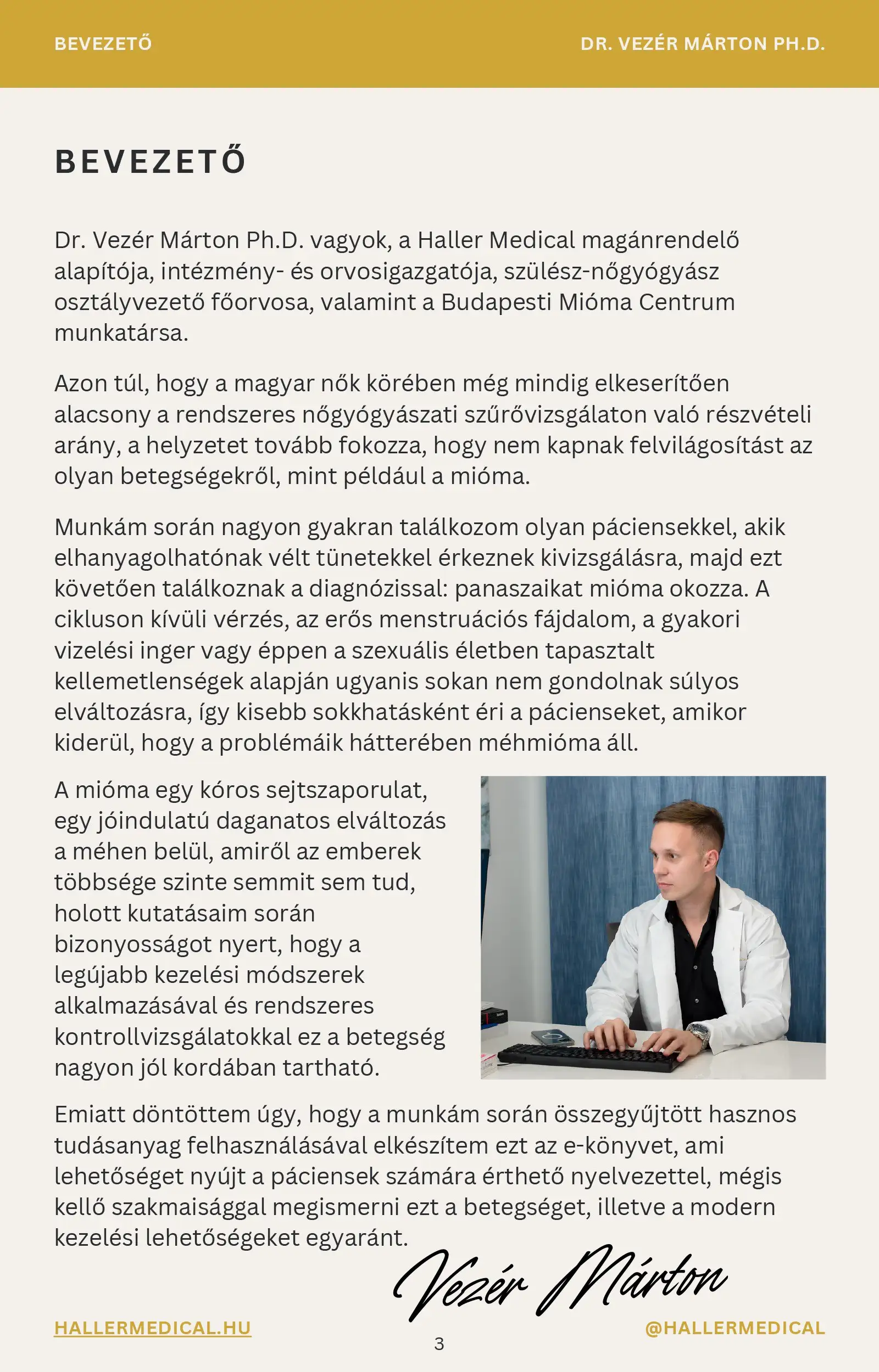 Dr. Vezér Márton Ph.D vagyok, a Haller Medical magánrendelő alapítója, a budapesti Mióma Centrum munkatársa.